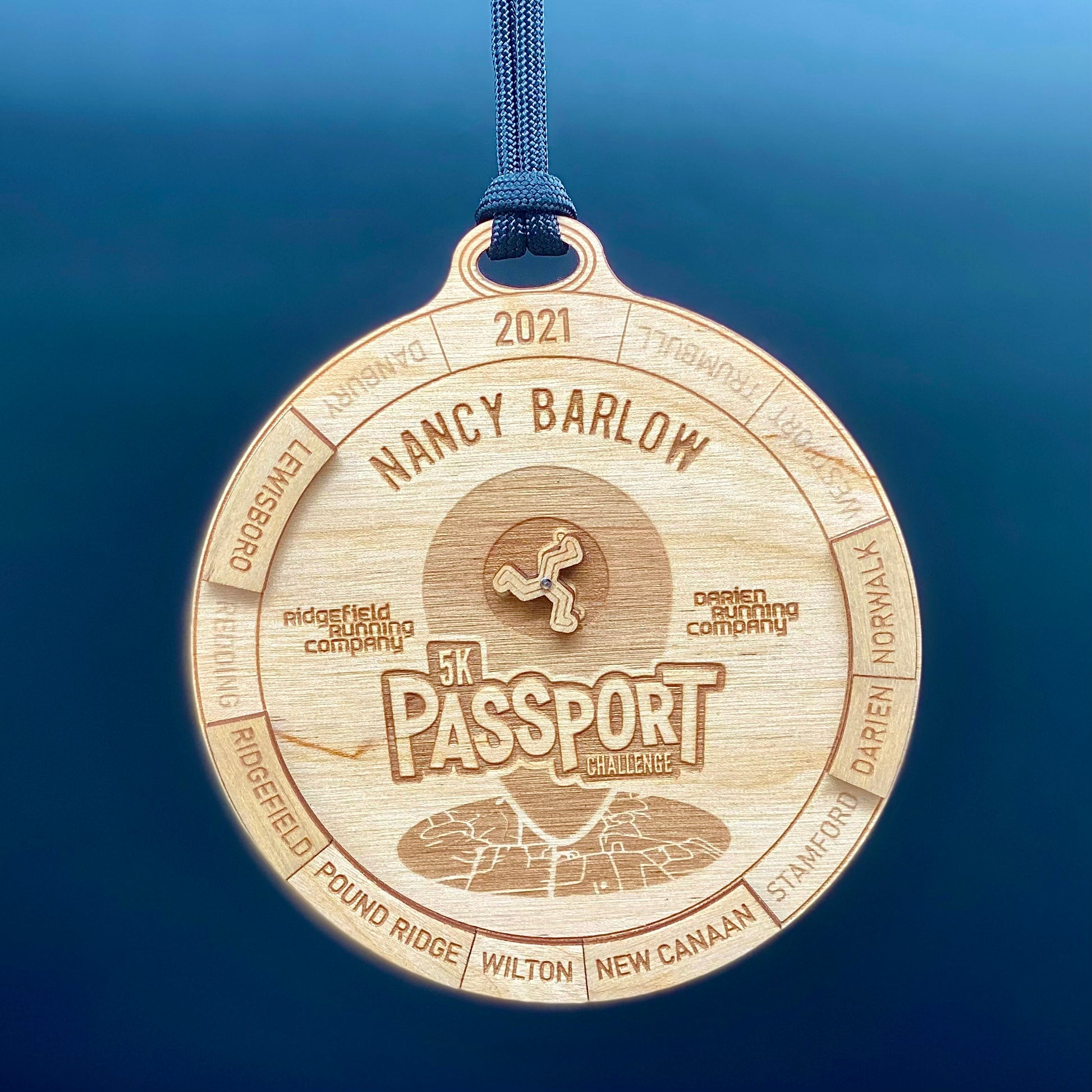 The Raven 100K Challenge a virtual hybrid 100K was a run, hike, or walk 100k in November2020. Raven Tree Works was commissioned to create an achievement woodalion which displayed the Raven Challenge artwork, and the name and distance of the finisher. Participants “unlocked” engraved achievement badges which were added around the medallion.