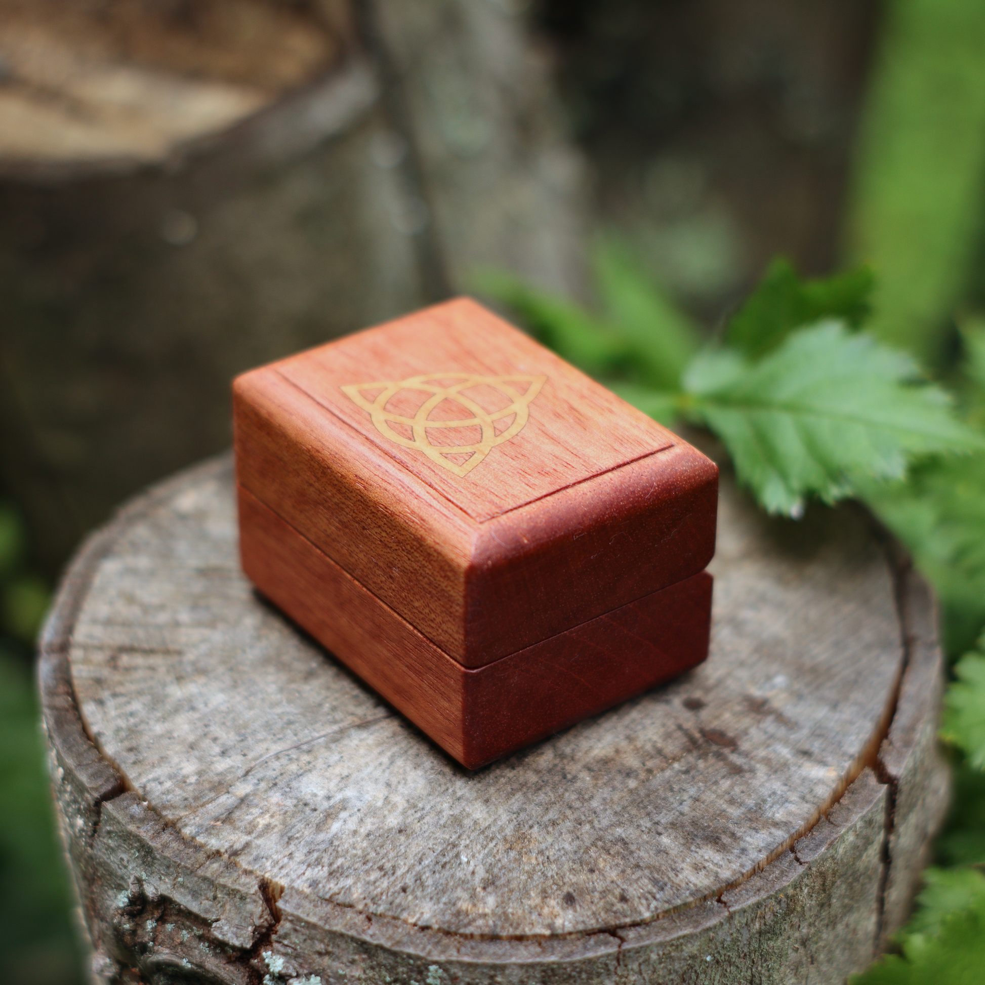 Mahogany box with maple inlayed trinity (Triquetra) knot.